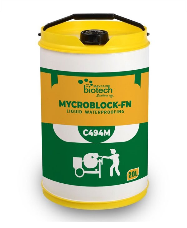 MYCROBLOCK- FN is an accelerating admixture which is made without chloride and is based on a blend of nitrite and format salts. It comes as a straw-coloured solution that dissolves in water right away. By quickening the early phases of cement hydration, Mycroblock FN causes a quicker stiffening and enables strength increase to start earlier. This impact is most prominent within the first 24 hours following mixing and is especially visible at low temperatures.