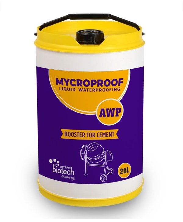 Mycroproof AWP is specially formulated as an integral waterproofing compound contains surface active plasticising agents, polymers, surfactant & hydrophobic additives. Integral liquid waterproofing compounds are used in construction to enhance the water resistance of concrete and masonry structures.
